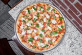 A thin pan pie topped with homemade cooked tomato sauce, fresh mozzarella, shredded parmigiana, burrata cheese, finished with imported pecorino romano & EVOO.